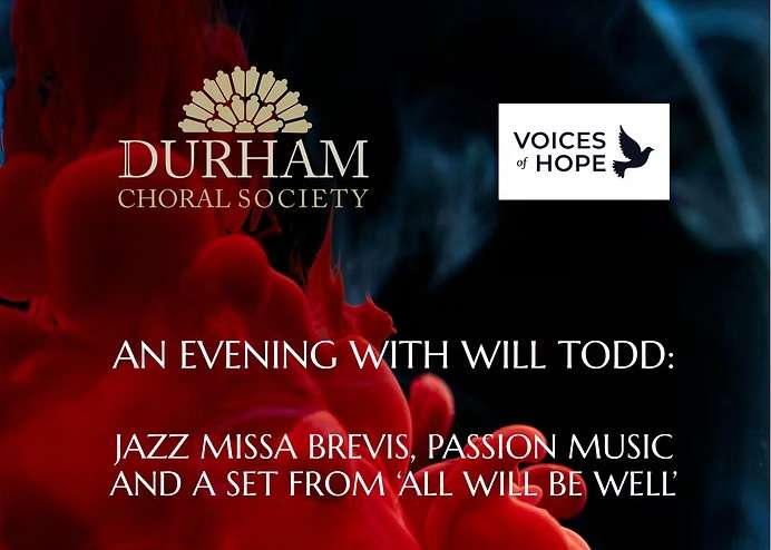 A celebration of Will Todd's choral music, with Durham Choral Society, Voices of Hope, Strictly Smokin' Big Band. Alice Grace and the composer on piano.